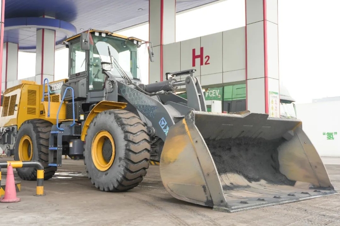徐工氫能電動裝載機,以氫氣作為動力能源,在燃料電池系統(tǒng)與氧氣發(fā)生化學反應產(chǎn)生電流,產(chǎn)物僅有電、熱量與水,有效減少燃油造成的空氣污染等問題,實現(xiàn)零碳排放。