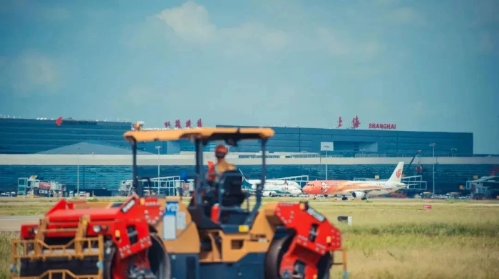 徐工雙鋼輪壓路機與上海虹橋機場同框