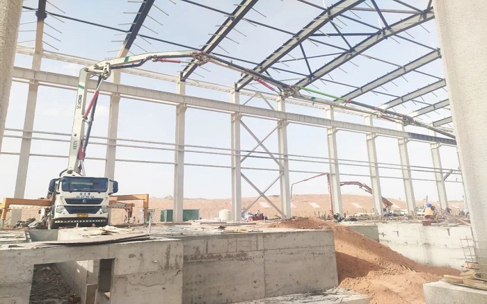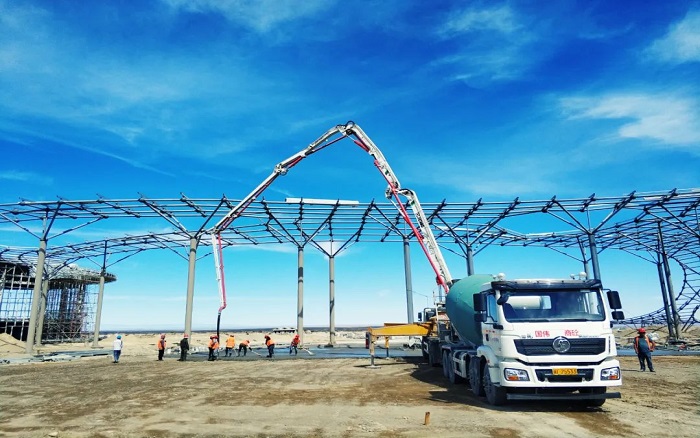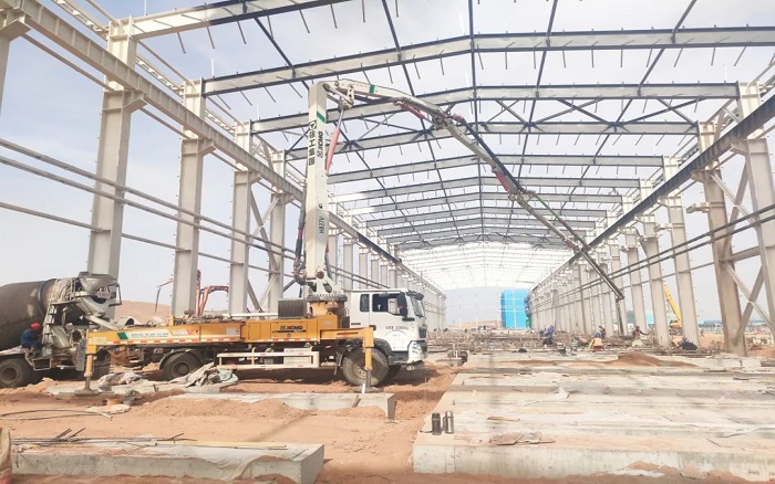 項目中后期以地面作業為主,鋼結構廠房受限于空間操作,對設備的動力和靈活提出了較高要求。最小起臂高度僅7.8米的徐工HB37V,靈活的通過性和操控性讓施工作業提質增速,為項目施工破解難題。