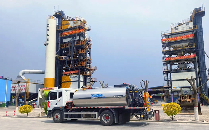 不遠處,并排而立的是徐工XAP241型瀝青混合料攪拌設備及XARP325H型整體式瀝青站。徐工與新民路橋之間的情緣也始于2016年,由徐工XAP241開啟。它于2017年投入使用,共計生產約60萬噸瀝青混合料。出于對徐工產品的信任,新民路橋再次于2022年采購4000型整體式瀝青站。它每小時產量可達320噸,目前也已投入使用。數臺徐工產品加持,定會為客戶創造更高的業績!