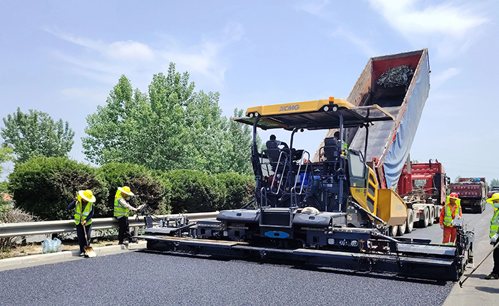 在之前進(jìn)行的淮徐高速瀝青路面施工養(yǎng)護(hù)工程中,施工方采用徐工RP905IV攤鋪機(jī)進(jìn)行路面的攤鋪工作。作為徐工熱銷款攤鋪設(shè)備之一,RP905IV具有高效、穩(wěn)定和精確的攤鋪能力。本次施工中,高速公路攤鋪寬度8m,攤鋪厚度為4.8cm,RP905IV為項(xiàng)目的油面施工提供了高質(zhì)量保障。