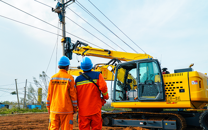 面對秋臺風(fēng)“摩羯”的侵襲,廣東交通運(yùn)輸部將臺風(fēng)響應(yīng)等級提升至一級。徐工開挖立桿一體機(jī)迎“風(fēng)”而上,在廣東緊急開展抗災(zāi)復(fù)電搶修工作,讓原本需要2臺挖機(jī)、10多名工作人員齊力拉線的工作變得安全“輕松”,大大降低了災(zāi)后搶修的人身風(fēng)險,保障當(dāng)?shù)鼐用竦碾娏Π踩€(wěn)定供給。