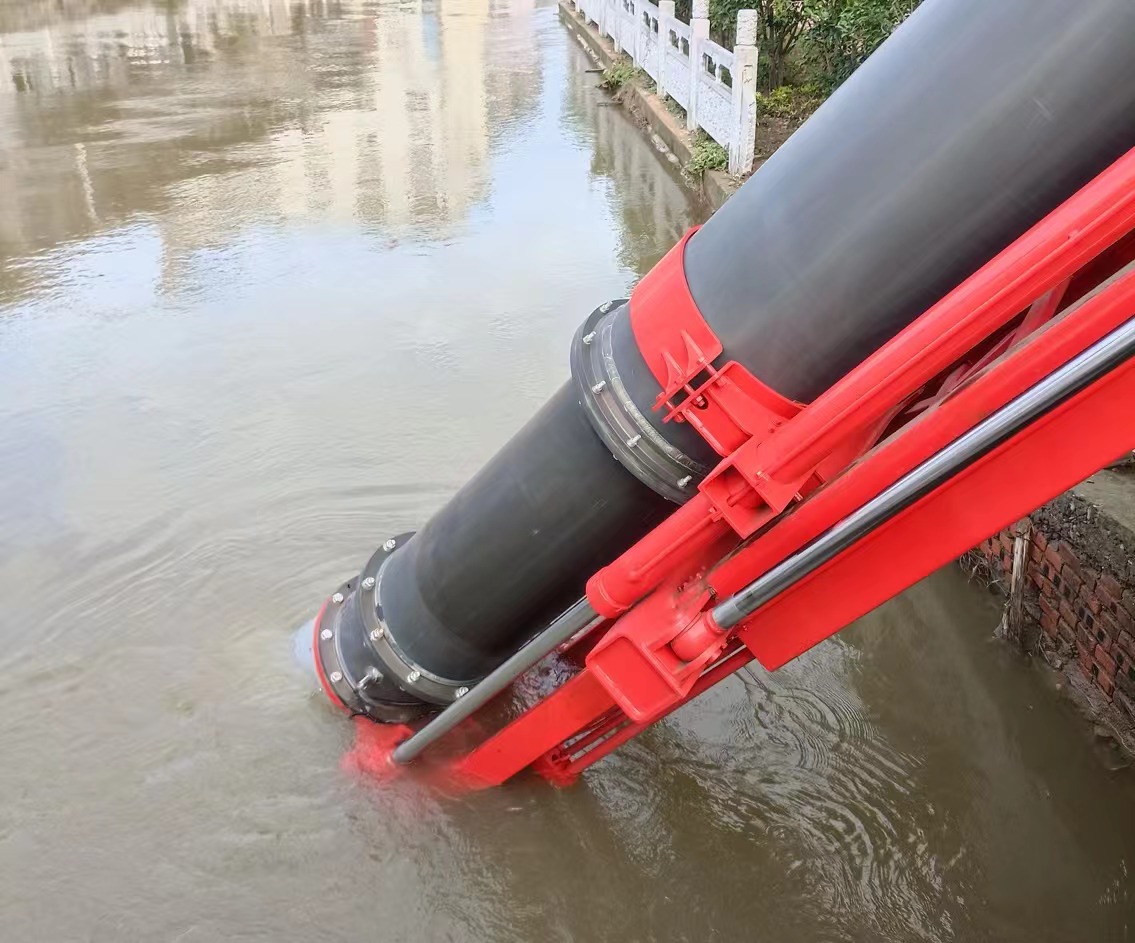 三龍支河經(jīng)縣城涵洞匯入蕭縣母親河——龍河,由于入河口的河道涵洞較小、流速較慢,難以承載過多排水量,雨停后水位仍遲遲不降,嚴(yán)重影響河道兩側(cè)居民生活。徐工救援人員聞“汛”而動,立刻趕往現(xiàn)場。