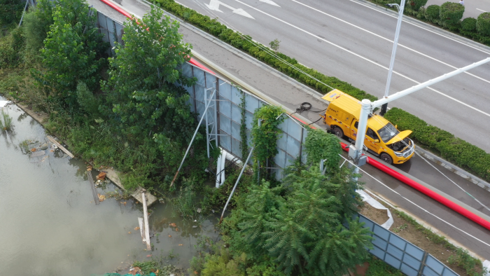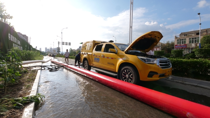 調試車輛、鋪設水帶、檢查管路,現場排水作業緊鑼密鼓地進行著。XGH5030TPSQ6爭分奪秒與時間賽跑,每臺車流量超600m3/h,最大可達1000m3/h,將積水源源不斷地排入下水道中。