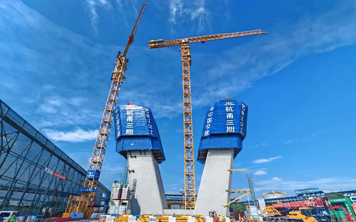 大獨立高度、少附著、大懸高,本次參建的徐工XGT3000起升功率大、動力強勁、作業效率高。同時應用H型鋼桿片式標節,承載能力強、防腐性能好,高度匹配大橋“流水線”生產的成套化、智能化建設。