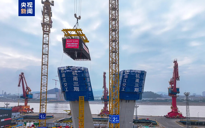 近日,在甬江特大橋施工現場,徐工超大塔XGT3000-120S揮舞鐵臂,67噸的鋼筋部品被穩穩吊起,精準安裝,徐工助力這一世界級跨江大橋建設提速加碼。