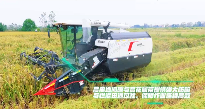 在復雜地形適應能力方面,徐工XR720履帶式谷物聯合收獲機同樣表現出色。加強型底盤與合理的重心設計,使得整車在行駛過程中能夠穩健前行,避免了前后失衡甚至“磕頭”或“翹尾”現象。高離地間隙與高花履帶的組合,則賦予了該產品強大的防陷能力與爛泥田通過性,使作業更具連續性與高效性。