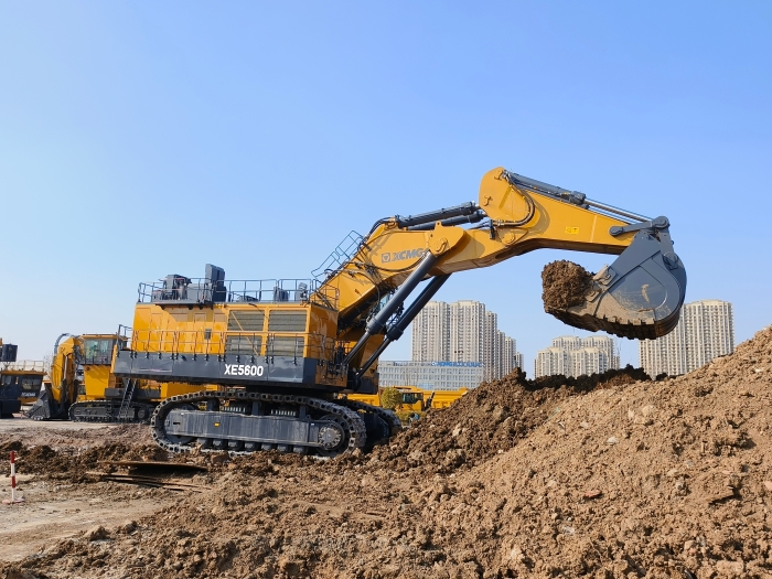 此次交付的XE5600礦用挖掘機是徐工自主研發、填補400至700噸級產品型譜空白的高端之作,配備兩臺1520馬力發動機驅動,動力十分強悍,可搭配徐工230-300噸級礦車成套使用施工。