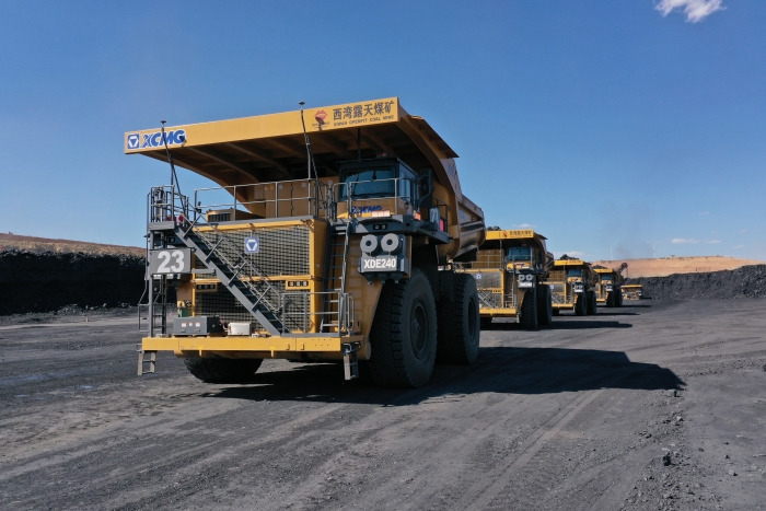 神延煤炭西灣露天煤礦當選國家首批智能化示范露天煤礦,成為國家智慧礦山標桿項目建設的典范。在連綿山巒中,數十臺無人駕駛的徐工XDE240礦用自卸車往復行駛,勾勒出一條充滿現代化、智能化的工程機械金色曲線。