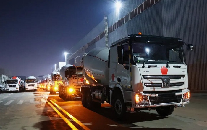 百余臺定制版52/58/62米泵車、12方攪拌車,列隊鳴笛,從徐州基地發(fā)往中東。產(chǎn)品采用耐高溫液壓系統(tǒng)與節(jié)油技術,適配中東極端環(huán)境,助建NEOM未來新城等超級工程。
