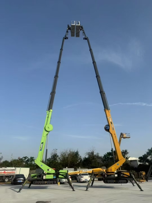 據了解,該項目擬新建20座淺圓倉糧倉,需同步實施內部維護與智能化改造,包括傳感器安裝、倉壁修補等作業。糧倉內部空間狹窄,粉塵敏感度高,且需杜絕燃油設備可能引發的爆燃風險,傳統腳手架或寬體設備難以滿足需求,徐工XGS39X-Li蜘蛛履帶直臂高空作業平臺成為破題關鍵。