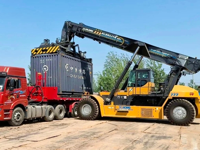 徐工針對性投入XCS4531K正面吊關鍵結構件經過強化設計與嚴苛驗證,保重載工況下的穩定運行;優化液壓與控制系統,實現精準微動操控,有效克服泥土吸附,顯著提升單箱作業效率。