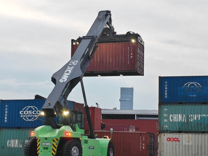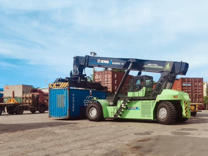 專為港口高強度作業(yè)場景深度定制的徐工XCS4531E5純電動正面吊,近日投入集裝箱堆場試運行。設(shè)備在高效完成集裝箱轉(zhuǎn)運測試后,其卓越性能贏得了客戶技術(shù)團隊的高度贊譽。