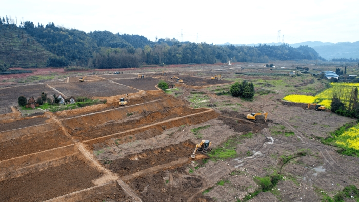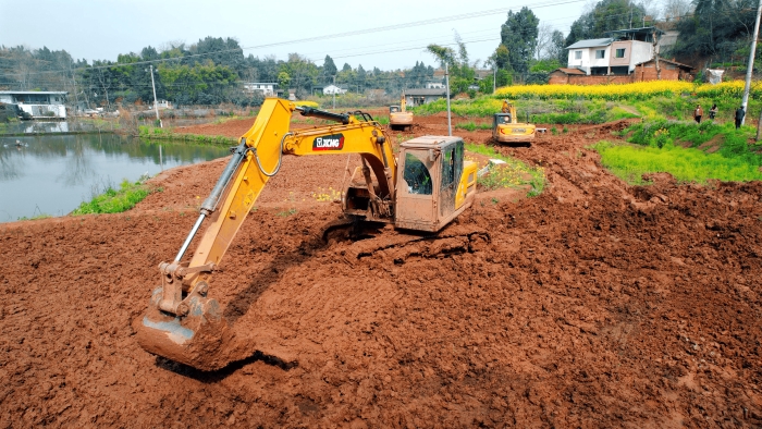 洪雅向東90公里,是仁壽縣,作為四川省產糧大縣,仁壽曾因田塊細碎導致機械化率不足。在5000畝的高標準農田建設中,項目方集結18臺徐工挖掘機,以“日均30多畝”的速度搶抓工期。