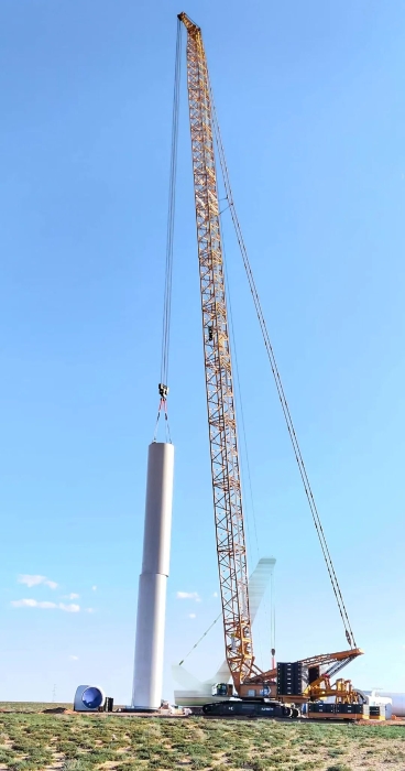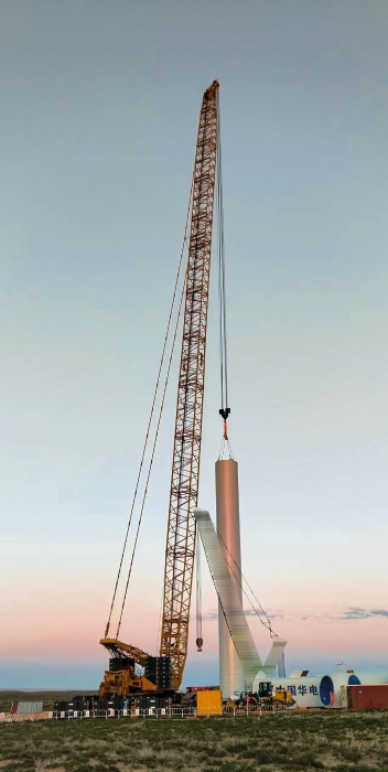 2025年5月,與河北采用195+5m超起工況完成首臺185m風機吊裝;