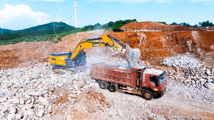 湖北宜城礦區深處,白云巖資源富集,開采作業正酣。徐工XE500GK液壓挖掘機以主力姿態投身于繁忙的開采隊伍當中,以卓越性能與可靠品質,贏得施工方高度認可,成為這片堅硬巖層中名副其實的“掘金巨無霸”。