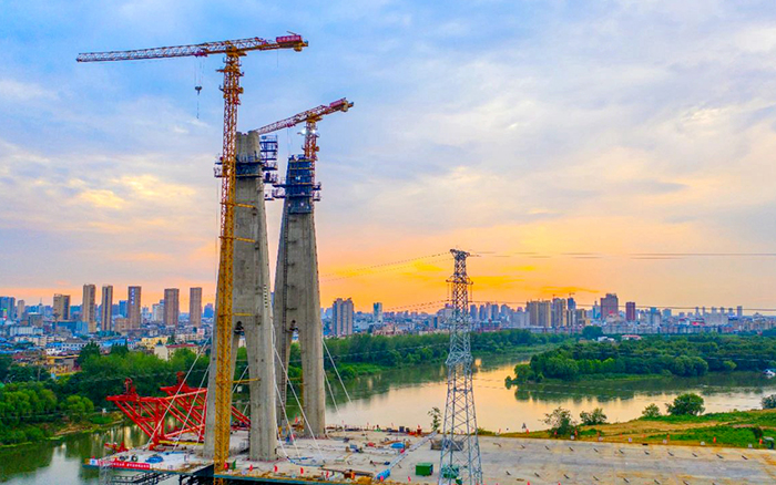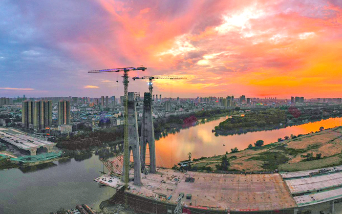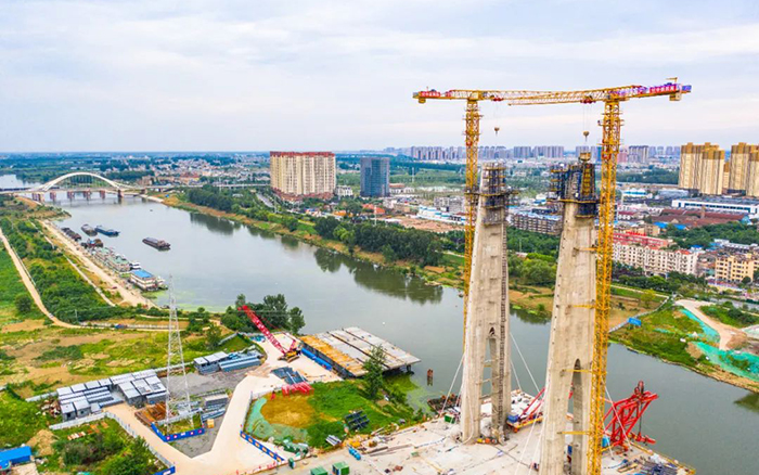 此次參建的項(xiàng)目是阜裕大橋項(xiàng)目,主要承接橋梁主塔的吊裝任務(wù)。阜裕大橋全長1735米,橋梁長1127米,主橋采用獨(dú)塔斜拉橋結(jié)構(gòu),主塔高95.6米,主橋斷面為60米超寬幅鋼箱梁,是國內(nèi)市政最寬鋼箱梁橋,建成后將成為阜陽的又一個(gè)“新地標(biāo)”。